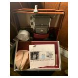 MUSIC AND ELECTRONICS: Flutes, Victrola, LPs, CDs, DVDs, VHS, Old Polaroid land camera model 80B, many cameras, Bushnell Super Star Machine, Gray Audograph, vintage phone,