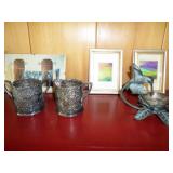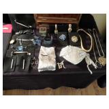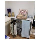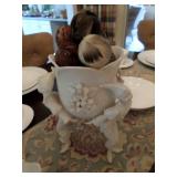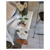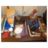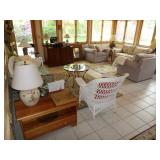 SALE HIGHLIGHTS: Arhaus cherry end table and TV table, Woody’s Chair Company rocker with woven seat and four dining chairs with woven seats, 42 inch round cherry table with two leaves, cherry entertainment cabinet, Shaker painted wall cupboard, Calico Corners sofa with nail head trim, Harden side table, Victorian mantle clock, Howard Miller Figure 8 wall clock, La-Z-Boy chairs, small cherry chest, Trompe L’oeil coffee tray table, wicker furniture, including sofa, chairs and rockers, antique one-drawer stand, Queen Ann dining table with two leaves, four upholstered dining chairs, J. Raymond floral loveseat and pair of occasional chairs, Drexel chest of drawers, Kilim upholstered chair, foot stools and hassocks, office chairs, pine queen bed with two pine side chests, daybed with trundle, wood and glass coffee table, lamps, including table and floor, sterling flatware, including Heirloom “Damask Rose” service for eight and Wallace Firenze, jewelry, including custom sterling by Patty Lonas and costume jewelry, jewelry making tools, area rugs, antique books, books, antique “Merrick’s” shop desk, Bose speakers, Singer sewing machine, Proton clock radio, Toshiba 21 inch TV and Samsung 38 inch LED TV, Sony Bravia 26 inch TV, Sony CD player and receiver, Victorian wash stand, kitchen items, including Royal Worchester china “Snow,” McCoy bowl with cups and saucers, large Warther knife, crystal, Corning dishes, Braun coffee maker, blender, Sunbeam stand mixer, Faberware 15 piece set non-stick pans, women’s clothing, including coats, scarves, purses and boots, wheel barrow, Weber Spirit propane grill, ceramic bird bath, indoor vertical fountain, coolers, yard tools, step stools, Craftsman hedge trimmers, miscellaneous golf clubs, golf balls, Lionel train set Sea Board Freight 0-27 gauge, Stack-On work bench, Whirlpool dehumidifier, holiday items, linens and so many more treasures!
