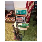 Allis Chalmers 1957 tractor with mower deck. Reloading press and accessories Ammunition, primers, hulls, smokeless powders, black powder, and more Jewelry, coins and collectibles Commemorative coins, Costume jewelry, pins, brooches, necklaces, cuff links, tie racks, collectibles buttons, ammunition, primers, Rare Russian nesting doll, Geiger Counters, Holsters, Magazines, military field guides, marbles, watches, knives, zippos, coins, Consecutive numbered dollar bills, 2 dollar bills, replica confederate currency, and so much more!!!! Electronics and musical instruments Allied turntables, JVC Turntable, Sony Cassette decks, Rare Pioneer Reel to Reel, Toshiba DVD/VCR, Pioneer dual cassette decks, Sony receiver, Sony DVD, Criterion speakers, MRC digital proportional radio controller controller, Sears mini TV, Sony Bravia flatscreen tv, HM White Trombone, Panasonic RF2200 short wave radio, Silvertone vintage dual speaker stereo, Heathkit tube tester, vintage Motorola tv, Sony dual cassette deck, Original Atari with controllers and games, Multiple Commodore vintage computers, police scanner, vintage Devry Projector, Vintage Bell and Howell projector, Lloyds solid state Vhs player, vintage General Electric standard signal generator, Cenco cathode Ray oscilloscope, Archer project board, Bell and Howell auto load, Floppy disc drives, Heathkit Laboratory generator, vintage Nashika camera, Paymaster adding machine, Pioneer TP705 8 track car stereo, lcd digital multimeter, CB tester, AKAI 8 track, Penske automotive analyzer, Centrex speakers, vintage working VT 240 desktop computer with monitor and floppy drive, AMC projector table, Sony bookshelf speakers, Slde viewer, Pacino picture tube tester, Vintage Nordmende Sterling Turnandos HIFI, Pioneer single cassette deck, vintage tube amplifier, hundreds of vintage tubes and parts, and so much more!!! Collectibles MCM table lamp with shade, small collectibles cannons and atlas missile, Indiana Glass iridescent covered pedestal Candy dish, Wall mounted daggers with mace plaque, Rogers flatware set, military bags, NASA framed photos, Kennedy framed photo, Framed Roman artwork, framed bullfighter print, MCM Starburst Clock, MCM brass starburst birds wall art, MCM brass birds, Royal typewriter, ITC adding machine , Paillard Bolex Camera, vintage cameras, telescope, 2 way radios, camera tripods, projector screen, vintage electric organ, Albums, 45s, DVDs, cassettes, CDs, reels, movie reels, vintage slides, First act Guitar, 8 tracks, RCA Victor tabletop radio, Tortoiseshell boats, MCM cat statues, Tons of books, vintage clock radio, religious collectibles, neon wall clocks, Regent beverages Wood crate with 12 green bottles, vintage golf clubs, vintage baby scale, vintage beam scale, Mattel Power Shop, vintage skis, vintage and antique fishing rods, antique bottles and canning jars, vintage slot car track, vintage velvet painted wall art, vintage 8 gallon crock, and so much more!!!! Furniture Mid century dining table, Painted lowboy chest of drawers, vintage kitchen serving table, Wrought iron fireplace tools, Wood Gun Cabinet, Vintage solid wood sofa, leather recliner, carved top end tables, Metal storage cabinets, vintage enameled kitchen cabinet, round dinette table, Wood chest of drawers, Antique bedroom suite including twin bed, chest of drawers and mirrored dresser, Small telephone stand, vintage colorful armchair, mirrored dresser, queen bed, glass door book case, MCM leather chair, MCM bedroom butler, Vintage chest of drawers, 2 tiered side table, wood side table, antique TV cabinet, antique stereo cabinet, antique armoire, Slate top pool table with balls and cues, chairs, vintage gas double size range, Vintage Philco ice box, and so much more!!!! Tools and hardware Actron CP9145 scanner, Hand Tools, Power Tools, Concrete mixer, ladders, leaf blower, Snap On, Craftsman, rolling tool cart, fillet, Cub Cadet SRC621 self propelled mower, chainsaw, compressor, welding torches, Miller Welder, sandblasted, ladders, snow blower, Honda gas pressure washer, craftsman floor Jack, lawn tools, vintage bicycle, air hoses, tires, metal car ramps, saw horses, AC manifold gauge set, Bosch bulldog heavy duty drill, saw all, dent puller, NIB Pgh Automotive vacuum pump, Shopcraft Drill Press with milling vice, craftsman bench grinder, Drill bits, tap and die sets, milling tools, shop vac, hardware, electronic parts, wires, gun cases, and so much more!!!! Kitchenwares Vintage pots and pans, flatware, utensils, crystal punch bowl, glassware, soup cups, Correlle, Chocolate melting pots, chocolate melting forms, Wagerware, Susan Winget Summer Song China, Blender, vintage sunbeam mixer, Wagner Turkey roaster, Taylor Smith China, MCM, Stemware, mid century carafe, shot glasses, depression Glass, milk glass, vintage metal cooler, vintage polar water jugs, Corelli patterned dishware, servers, Bundt Pan and so much more! Clothing Vintage little girls dressers, under bed shoe storage, Men’s clotting, ties, outerwear, hunting gear, shirts and pants, linens and so much more! Miscellaneous Luggage, suitcases, VHS storage, Cd towers, Humidifier NIB, Purses, Bissell carpet cleaner, vintage holiday Decor, vintage hair dryer kit, and so much more!!!!