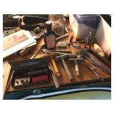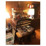 Many Great Smalls - Zippos, Pocket Knives, Silver & Gold Jewelry, Pocket Watches, Compacts, Marbles, Razors, Fountain Pens, Coins, Advertising Premiums, Watch Fobs, Victorian Photo Albums, Tin Types, CDV's, Cabinet Cards, Daguerreotypes, Postcards, Early Paper & Advertising Pieces, Cone Top Beer Cans, Old Banks, Old Bottles, Milk Bottles, Lodge Sword, Old Cameras, Oil Lamps, Mantle Clocks, Victorian Frames & Prints, Majolica Pieces, Tin Toys, Stamp Collection, Stereoview Cards, Early Lamps, Roseville Pieces, Pottery, Porcelain, China, Early Glass, Colored Glass, Enameled Depression Glass, Cobalt, Rose Bowls, Cut Glass, Pattern, Flow Blue China, Transfer Pieces, Sets of China, Griswold Pieces, Vintage Kitchen Pieces, Pyrex, Corelle, Small Appliances, Oak Table with 6 Chairs, Large Oak Bow Front Glass China Cabinet, Marble Top Washstand, Mahogany China Cabinet, Oak Entry Mirror, Small Tables & Stands, (2) Violins, Roll-top Desk, Howard Miller Grandfather Clock, Early Handmade Inlaid Table, Early Books, Wurlitzer Organ, Early 10 cent Mills Slot Machine, Vintage Clothing, Furs, Sewing Items, Jars of Buttons, Featherweight Sewing Machine, Other Sewing Machines, Desks, Bookcases, Wardrobes, Vanities, Wall Mirrors, Treadle Sewing Machine, Sleeper Loveseat, Vintage Sofa & Chair, Chairs & Recliners, Washer & Electric Dryer, TVs, Lamps, Floor Lamps, Sofa Table, Prints & Artwork, Deco Pieces, Chests & Dressers, Cedar Chests, Blanket Boxes, Quilts, Linens, Bedding, Iron King Bed, Bakelite Pieces, Oak Wardrobe, Dolls, Toys, German Beer Steins, Vintage Hats, Early Oliver No.3 Typewriter, Banded Bowls, Enamelware, "Special" 1988 Chevy Fleetwood Southwind 27' RV 34,575 Original Miles, Honda Urban Ex. Moped, Lots of Hand Tools, Handheld Power Tools, Bench Vise, Hardware, Jacks, Air Compressor, Craftsman 26" Snow Blower, Lawn Chairs, Old Riding Mower, Iron Patio Set, Milk Cans, Crocks & Jugs, Old fire Extinguishers, Watering Cans, Old Saws & Tools, Old Fishing Items & Lures, Small Chest Freezer, Garden Tools, Shovels, Rakes, Lawn Decorations, Grill, Too Much to List - Extremely Full Sale!