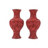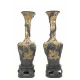 - 1001 PAIR CHINESE CLOISONNE VASES W BRONZE DRAGON OVERLAY