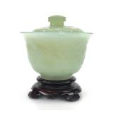 - 1017 VINTAGE CHINESE LONGEVITY CARVED JADE LIDDED BOWL