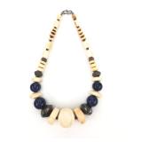 - 1025 ANTIQUE AFRICAN IVORY LAPIS & SILVER BEAD NECKLACE