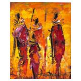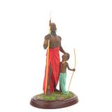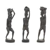 - 1044 3PC AFRICAN HAND CARVED WOOD HUNTER STATUES