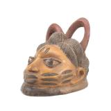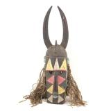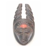 - 1054 VTG WEST AFRICAN HAND CARVED HORNED TRIBAL MASK