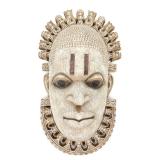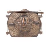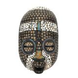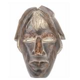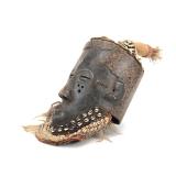 - 1060 AFRICAN HAND CARVED TIKAR MASK W/ BRASS EMBELLISH