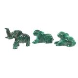 - 1064 3PC ZAIRE AFRICA HAND CARVED MALACHITE ANIMALS