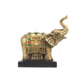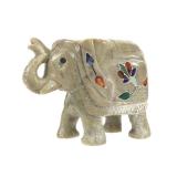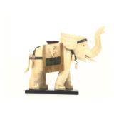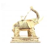 - 1460 LARGE VTG CHINESE HAND CARVED BONE INLAY ELEPHANT SCULPTURE