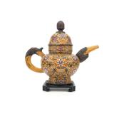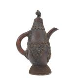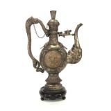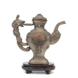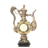 - 1495 VTG MONGOLIAN SILVER JADE TURQUOISE DRAGON TEAPOT