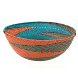 - 1030 VINTAGE AFRICAN COILED POLYCHROME FLAT BASKET