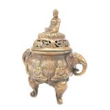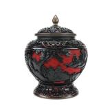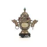 - 1459 CHINESE SILVER JADE CARNELIAN DRAGON HANDLE CENSER