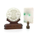 - 1511 CHINESE HAND CARVED JADE DRAGON MOTIF BI DISC