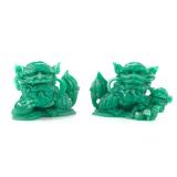 - 1463 PAIR HAND PAINTED BONE CARVED INLAY FOO DOG SCULPTURE