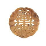 - 1506 VINTAGE CHINESE HAND CARVED BROWN JADE BI DISK