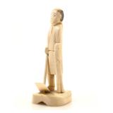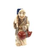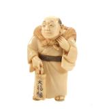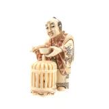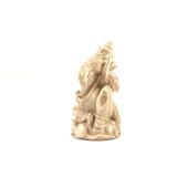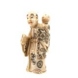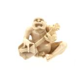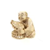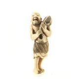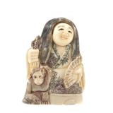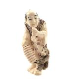 - 1489 JAPANESE HAND CARVED IVORY MAN WITH MONKEY NETSUKE