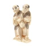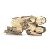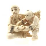 - 1476 JAPANESE HAND CARVED IVORY MAN & CHILD NETSUKE
