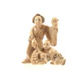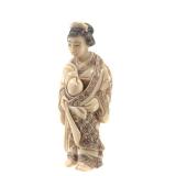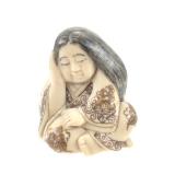 - 1488 HAND CARVED IVORY JAPANESE WOMAN NETSUKE FIGURE