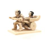 - 1532 JAPANESE IVORY CARVED MAN ON FISH NETSUKE FIGURE