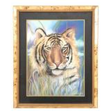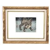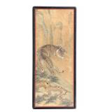 - 1498 SIGNED CHINESE "BENGAL TIGER" CALLIGRAPHY WATERCOLOR