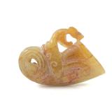- 1006 CHINESE HAND CARVED PIERCED JADE FLORAL FISH MOTIF