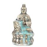 - 1534 ATQ CHINESE CARVED IVORY GUANYIN SEATED ON LOTUS