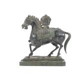 - 1018 VTG CHINESE CARVED JADE RUNNING HORSES SCULPTURE