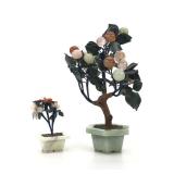 - 1465 2PC ASIAN JADE CARVED PEONY BONSAI FLOWER TREES