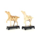 - 1471 PAIR SMALL CHINESE HAND CARVED BONE HORSE SCULPTURES