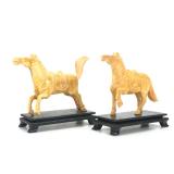 - 1470 PAIR SMALL CHINESE HAND CARVED BONE HORSE SCULPTURES
