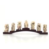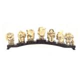 - 1472 7 LUCKY GODS NETSUKE FIGURES ON WOOD BRIDGE
