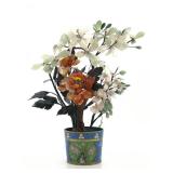 - 1473 VINTAGE CLOISONNE POTTED JADE PEONY BONSAI TREE