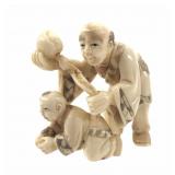 - 1478 JAPANESE HAND CARVED IVORY MAN & CHILD NETSUKE