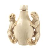- 1480 CHINESE HAND CARVED IVORY FOO DOG SNUFF BOTTLE
