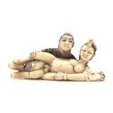 - 1490 JAPANESE HAND CARVED IVORY WOMAN & CHILD NETSUKE