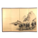 - 1522 CHINESE LANDSCAPE HAND PAINTED SILK 4 PANEL SCREEN