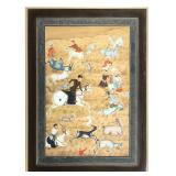 - 1523 VINTAGE MIDDLE EASTERN HUNTING SCENE PAINTING