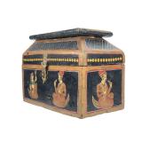 - 1536 VTG HAND PAINTED COLORFUL INDIAN WOODEN HINGED BOX