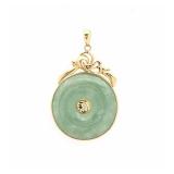 - 1539 14K YELLOW GOLD & JADE DISC HAPPINESS PENDANT