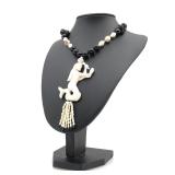 - 1545 14K YELLOW GOLD ONYX & IVORY CARVED PENDANT NECKLA