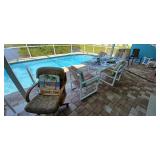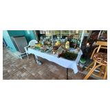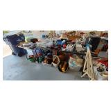 PVC patio table set and chairs, with additional love seats and chairs, Many Floridian Décor pictures, Pelicans, dolphins, shells and other items, Bar stools, China, Blue Glass, Depression Glass, Knick Knacks, Fire Place items, Large Flat Screen T.V., Huge Beautiful 100 year old Wall Mirror. Many holiday items, 2 pressure washers, 4 Shelving units, Shoe Racks, Electronics, tools and supplies, Dog Ladder and Toys, Yard tools and supplies. And many other items. |