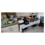ITEMS FEATURED IN SALE but not limited to. Lots of Great things here in this little home. Brand New Beautiful sleeper sofa with matching love seat, Huge Very Nice Turkish area rug (from Turkey) Dining room Table with leaf and 6 chairs, Hutch and server, Nearly New Rattan and Glass Dinette Set, Rattan Arch Rack, King Size bed/headboard with Memory Foam Mattress, Beautiful Pillow top Queen bed in Metal and Wood, Dressers, Night Stands, End Tables. Chest of Drawers, Linens, Woman’s Clothing, Huge selection of Kitchen Items, dishes, pots and pans, small Appliances, microwave etc. wicker baskets.
