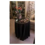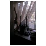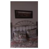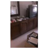 This sale consists of living room and bedroom furniture: sofa, club chair and ottoman; wrought iron and glass coffee table; wall unit; giraffe collection; artwork; linen; towels; small kitchen appliances; dinnerware; pots and pans; wardrobe closet, dresser, mirror, hanging light; candlestick lamps; clothing, and other "everyday" household items. |