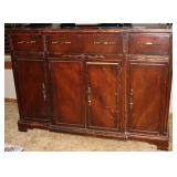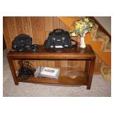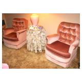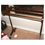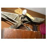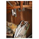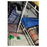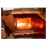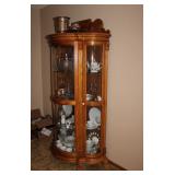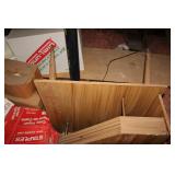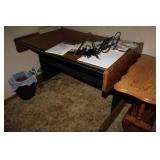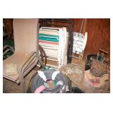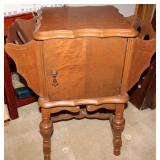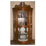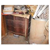 Claw foot oak curved curio cabinet-very nice; dark mahogany lighted curio cabinet; 1940’s Duncan Phyfe mahogany buffer-rough; newer oak dining table & (6) chairs; 1940’s copper-lined smoke stand; pair mid-century vinyl barstools w/ chrome bases; white painted wicker cabinet; dark oak sofa table; oak bookcase; television stand; brass rack; several overstuffed chairs; computer desks; mahogany quilt rack; white painted dresser w/ tri fold mirror & matching nightstand; dark oak 4-poster bed frame; painted deco end table w/ 2 drawers; oak side tables; nice oak glider rocker; sofas; early 1900’s 4-drawer serpentine-front dresser-rough; small hall table; several child’s chairs; antique trunk; mid-century 2-tier end table; etc.