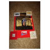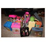 Metal red wagon; taxidermy buck mount; sizable collection glass perfume bottles; art glass; knick-knacks; Russian blue porcelain trinket box; Willow Tree; early Asian bone box-unusual; mid-century smokestand; silverplate; Noritake “White Brook” china set-complete; Platzgraff stoneware set-complete; glassware & crystal; TWA memorabilia including posters; Corelle; vintage Pyrex-some “Crazy Daisy;” 1940’s Johnson & Johnson “First Aid Autokit;” quilts & quilt-tops; Melmac ware; pair brass andirons; sunburst wall clock; few pieces carnival glass-some Fenton; pottery; large framed gilt mirror; large Behringer speaker; Peavey 300 channel preamp mixer; stereo equipment & turntables; vintage toys-some Fisher-Price; Union Pacific Railroad calendars; taxidermy quail; early gas-powered toy airplane; camera equipment; (2) Canon EOS Rebel cameras; Sony 4K Handycam; Coach purse; professional DJ equipment including a NuMark turntable, lighting, etc.; large set Playboy mugs; 1940’s Philco radio; Ideal Crissy doll in org. box; cigarette lighters; advertising playing cards; art glass turtle lamp; brass chandelier-1970’s; costume jewelry; decanters; & much more!