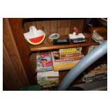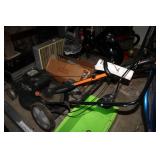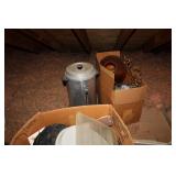 Concrete birdbaths; Thermos BBQ grill-like new; wrought-iron ornamental pieces; Toro 6.5HP lawn mower; folding lawn chairs; yard, hand & power tools; extension cords; Craftsman electric leaf blower; Homelite electric leaf blower; bolt bins; shop cabinets-some metal; lots hardware; much holiday decor; wall art; some NIB Pampered Chef items; kitchen goods; small kitchen appliances; NIB items; chemicals; Easy Home dehumidifier; exercise bike; Danby mini refrigerator; smaller Emerson flat panel TV; sewing notions; linens; Tupperware; large cedar martin bird house; assorted yard art; planters; lamps; books; toys; board games; barware; MANY BOX LOTS; & much more!