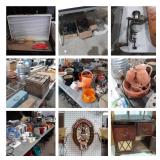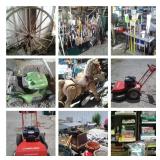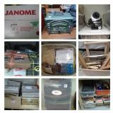 Janome Memory Craft 6600 Sewing Machine Boxes and Boxes of Quilting, Fabric and Crafting Material Antique Secretary Wood Serving Cart PBR Lighted Sign English Ironstone Sterling Dinner set Kitchen Aid Mixer Antique Radio 5 Gal Butter Churn Vintage Pedal Tractor Troy-Bilt Bush Hog Vintage Games Dressers and Much Much More!!!