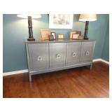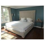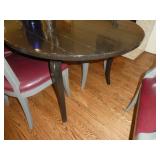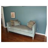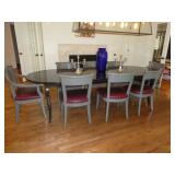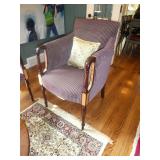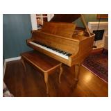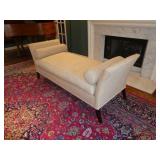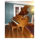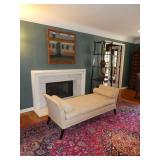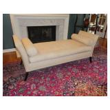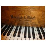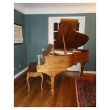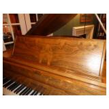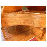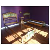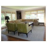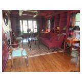 Antique Kranich & Bach exotic wood baby grand piano, serial no. 51601 Beige raw silk settee with bolster pillows Pair of black vintage side tables with carved leg & hoof feet Black lacquer obelisk etagere with 5 carved rope shelves Vintage oak armchair with chinoiserie upholstery Vintage mahogany frame chair Mahogany table with pull out candle stands Antique mahogany 5 drawer chest with stone top Hancock & Moore inlaid mahogany Successionist-style settee and pair of chairs Hickory Chair Company 9-drawer mahogany tall chest Sherrill burgundy sofa with mahogany legs Pair of mahogany circular top tables with inlaid star pattern Maitland Smith oval banded mahogany partners desk with inset leather top & ball/claw feet Hancock & Moore leather executive chair Pair of Queen Anne-style mahogany armchairs Pair of vintage mahogany side chairs with nail head detail Scalloped burlwood coffee table Pair of Bernhardt Prentiss leather armchairs Planked side table with green painted base Black painted plank farm style dining table with 2 leaves 8 Gray painted dining chairs with leather seats Pair of brown leather wrapped bar stools Small mahogany Queen Anne style drop-front desk Custom beige chenille upholstered sectional Johnson Handley Grand Rapids inlaid mahogany sideboard Vintage banded mahogany double pedestal dining table with 2 leaves & pads 8 Chippendale-style carved mahogany dining chairs Susan Salzman white painted chest and nightstand Custom striped chaise and 2 piece sectional by Modern Classics Furniture Pair of Breuer style oak/chrome chairs Pair of vintage twin beds with upholstered headboards & matching bedding Gold painted nightstand Custom upholstered Queen Anne-style mahogany open arm chair Slip covered twin sofa bed Vintage mahogany king headboard Michael Weiss by Vanguard Furniture modern gray credenza Tufted off white flannel king upholstered bed Lexington burnout velvet sofa/daybed Natuzzi 4 pc brown leather sectional Iron tile top coffee table Black media cabinet with louvered doors Iron center table Vintage wing back chair with nailhead detail Vintage painted trunk 2 slip covered convertible twin bed/chairs Wicker side table w/ white laminate top Vintage white cane full headboard Green dresser with mirror and matching headboard Brown Jordan oval patio table with 6 chairs, 2 chaise loungers, 2 arm chairs with side table and glider ART