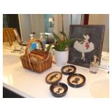 John Lennon (English, 1944-1980) “Mind Games”, Self Portrait, Lithograph Roger Bole (American, 20th c.) “Subway Cars”, Oil on canvas John Hall (Canadian, 20th c.) “I was Lucky”, Oil on canvas, Asian prints 2 Glick pottery plates Signed Asian painting on silk with two birds Framed antique bookplates DECORATIVE ACCESSORIES & ANTIQUES