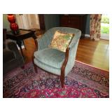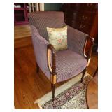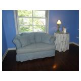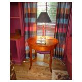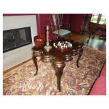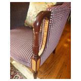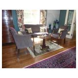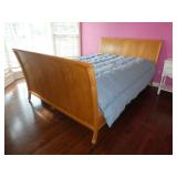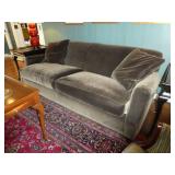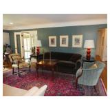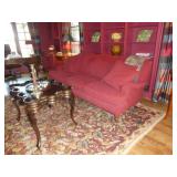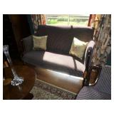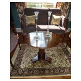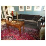 Gray mohair sofa Classic inlaid mahogany round pedestal side table 4 ft square planked oak coffee table Queen birch sleigh bed OTHER FURNITURE