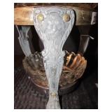 Auction contains Amazing Antique Victorian Era Side Board With Amazing Lion Head Carving Motif, Antique Dark Wood Rococo Revival Style Arm Chair, Turn of the Century Tubular Brass Bed, Unique Furniture Markers Mahogany Dresser, Antique Scallop Back Upholstered Arm Chairs, Goebel Hummel Figurines, Embassy USA Vitrified China, Royal Daulton Christmas Lantern Figurine, Huge Amount of Ceramic Figurines, Home Decor, Christmas Decor, Kitchen Decor, AND MORE!